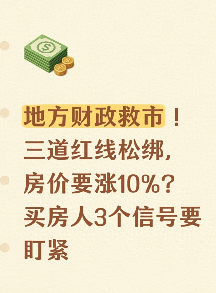这次政策松绑,是为了“稳楼市、保交楼、救财政”,不是为了“炒房价”。房价不会暴涨10%,只会“稳中有涨”,核心城市的优质楼盘涨一点,三四线城市的房子还是会跌。